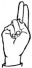 На ћирилици написано ЛУНА БЕКРИЋ састоји се из 10 слова [?]. Исписано ћириличном једноручном азбуком за глувонеме: